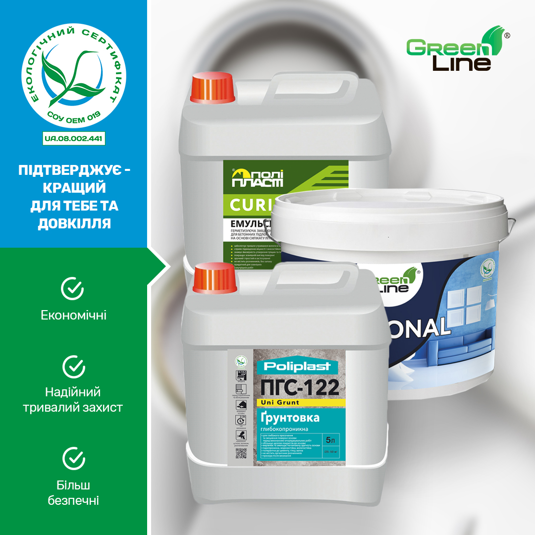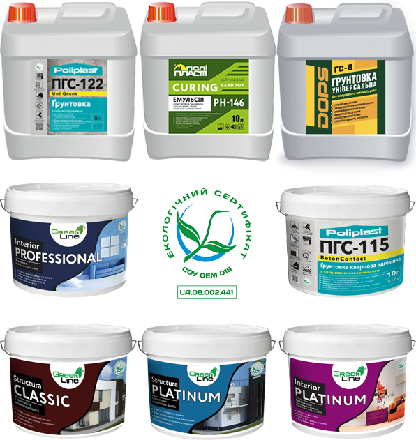 Склад екологічно сертифікованих лакофарбових матеріалів ТМ «Green line», ТМ «Поліпласт» та ТМ «DOPS» сформований з безпечних для людини та довкілля інгредієнтів, більшість з яких вироблена в країнах ЄС. Сертифікована продукція не містить таких небезпечних для людини та навколишнього середовища речовин, як: алкілфенол етоксилати, перфторовані алкілсульфонати, фталати, етиленгліколь, озоноруйнівні речовини. Показники вмісту ЛОС та сполук ізотіазолінону у лакофарбових матеріалах не перевищують допустимих екологічним стандартом показників.