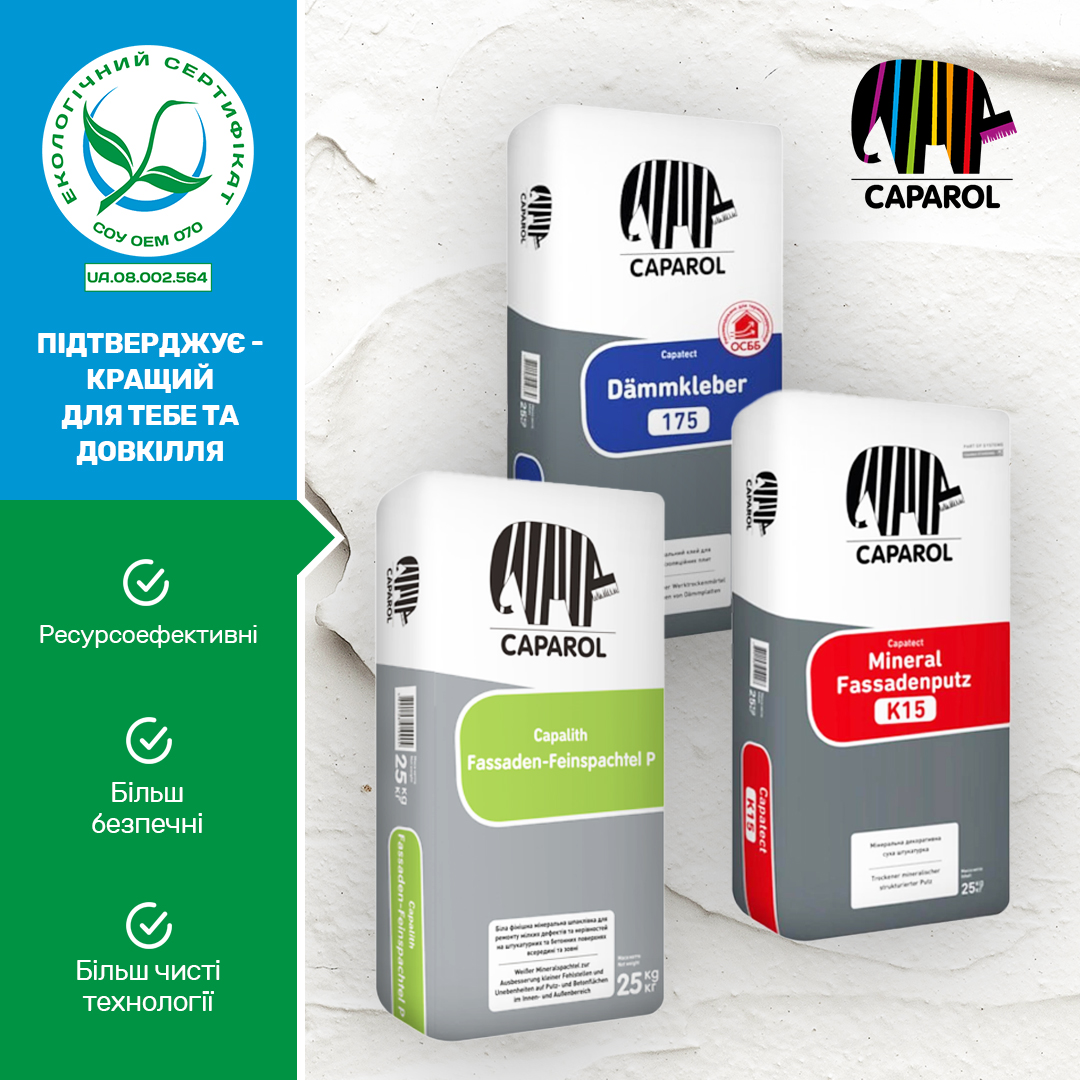 6 найменувань екологічно сертифікованих сухих будівельних сумішей ТМ Сaparol і ТМ Сapatect виробництва ТОВ «Капарол Україна» успішно пройшли процедуру щорічного нагляду.