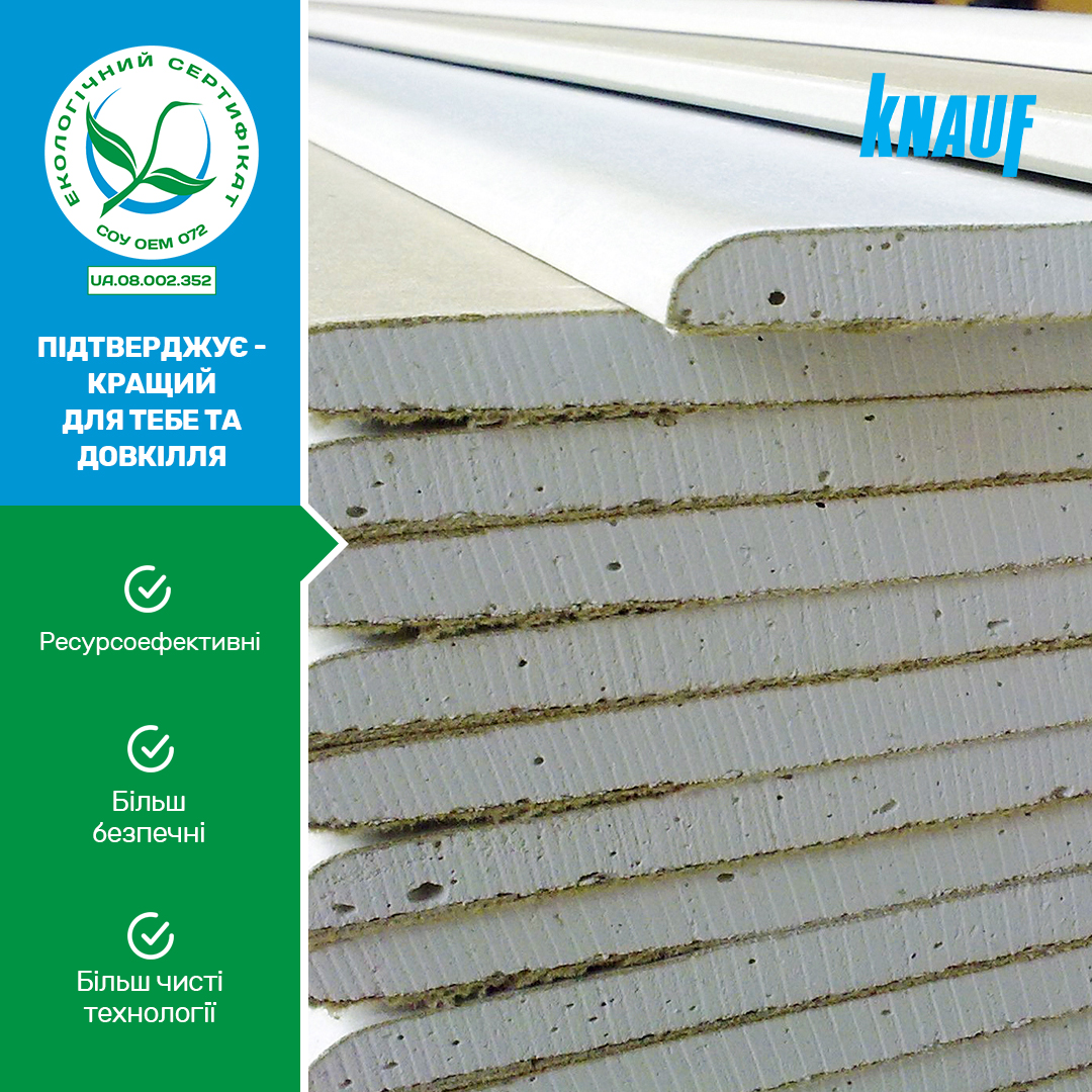 4 найменування плит гіпсокартонних ТМ Кнауф (Knauf) (сертифікат № UA.08.002.352) виробництва ТОВ «Кнауф Гіпс Кмїв» успішно пройшли процедуру щорічного нагляду.