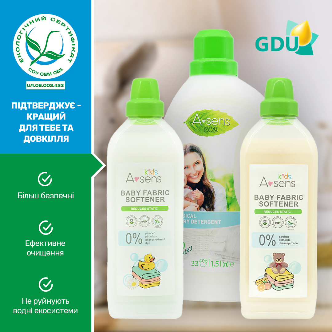6 найменувань мийних засобів ТМ A-SENS компанії ТОВ «Голд Дроп-Україна» в черговий раз підтвердили свою відповідність вимогам СОУ ОЕМ 08.002.12.065:2020 Засоби мийні та засоби для чищення. Екологічні критерії оцінювання життєвого циклу.